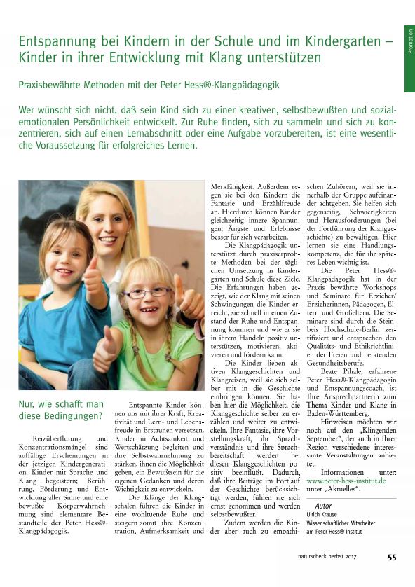 Entspannung bei Kindern in der Schule und im Kindergarten - Kinder in ihrer Entwicklung mit Klang unterstützen, von Ulrich Krause in Naturscheck Herbst 2017